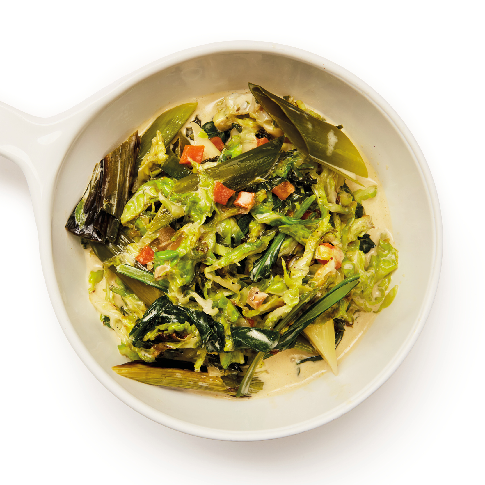 - Add sliced cabbage and cook for 5 minutes until wilted.